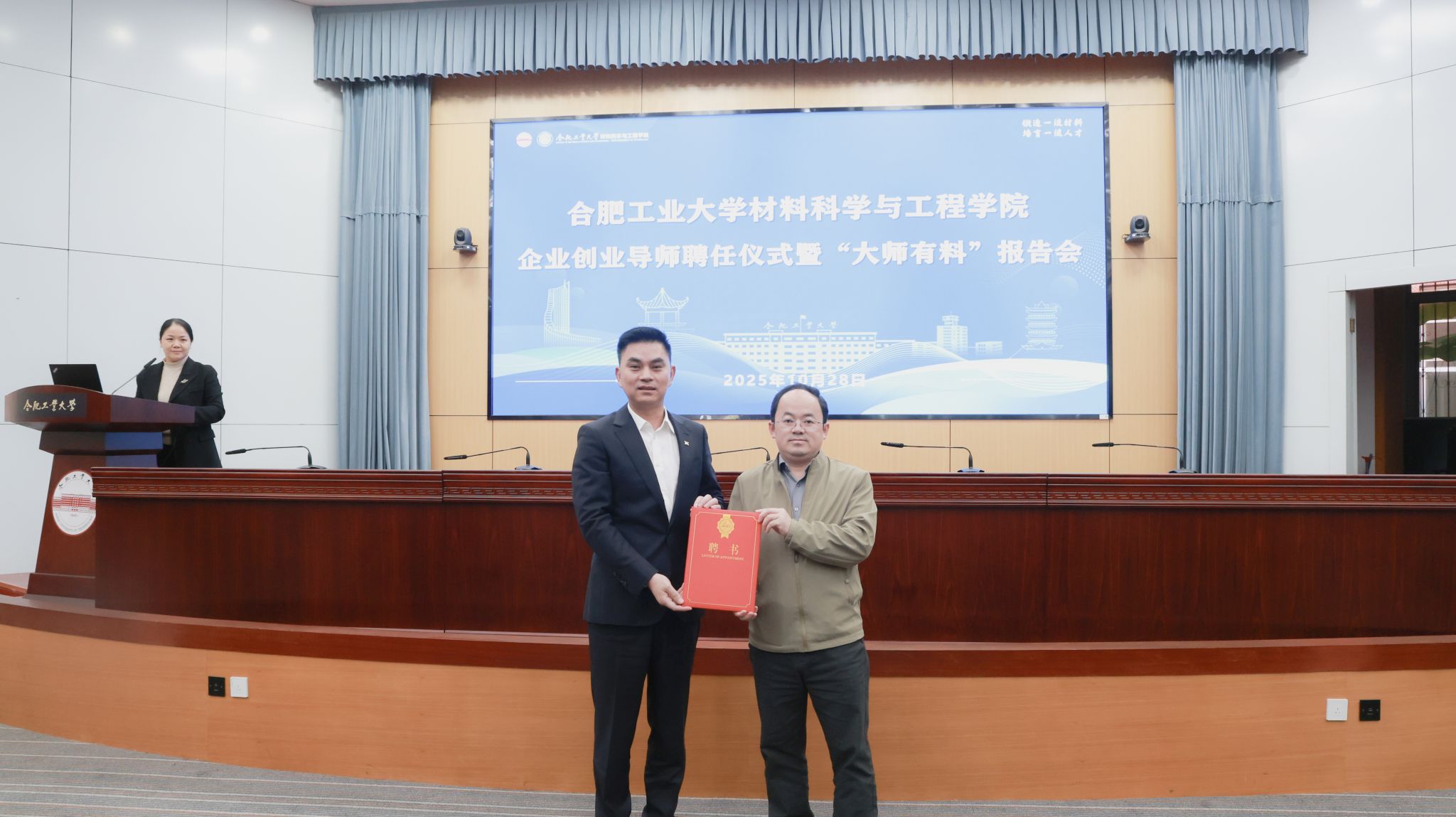10月28日下午,学院在屯溪路校区学术会议中心一楼报告厅举行企业创业导师聘任仪式暨专题报告会,巡鹰新能源集团董事长褚兵受邀参加。